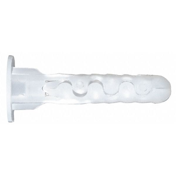 Wall Anchor, System of Measurement Inch, Wall Anchor Type Plug Anchor, Anchor Length 1 in, Anchor Diameter 3/16 in, Thread Size Not Applicable, Thread Length 1 3/16 in, Drive Type Not Applicable, Flange Style Not Applicable, Head Type Not Applicable, Includes Screw No, Screw Size Included Not Applicable, Screw Length Included Not Applicable, Compatible Screw Size #4 to #10, Color White, Finish Plain, Material Plastic, Compatible Material Block, Brick, Concrete, Drywall, Plaster, Stone, Wood