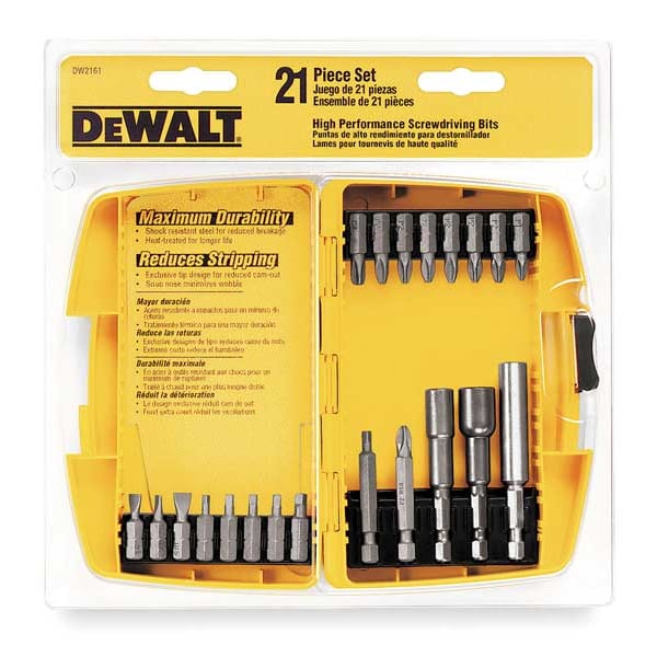 This Dewalt DW2161 21 Piece Screwdriver Bit Set comes with a 1/4" hex shank that fits into the power tool. This allows you to work faster and more efficiently. It contains screwdriver bits in different sizes, so you can choose the one that best suits your application. The set comprises of steel fastening tools, which are great for screwdriving applications. The bit has a 1/4" hex shank size, making it compatible with most power tools on the market today. When it comes to screwdriving applications, no other brand beats Dewalt's DW2161 21 Piece Screwdriver Bit Set.