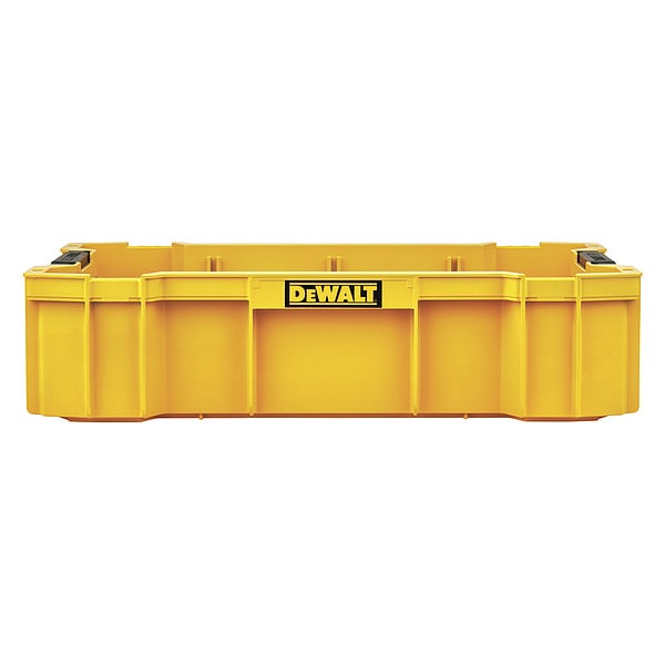 The DEWALT DWST08120 Tool Tray is the perfect way to store your tools. It is made from heavy-duty plastic and has a yellow color for easy visibility. The tool tray measures 4 1/2" in length, 12 1/16" in width and 18 3/8" in height. It comes with an adjustable handle that makes it easy to carry. There are also two side handles on the tray itself, so you can lift it up with ease. This yellow tool tray has several compartments for storage of different tools or accessories. When you need a place to store your tools, the DEWALT DWST08120 Tool Tray is what you need.