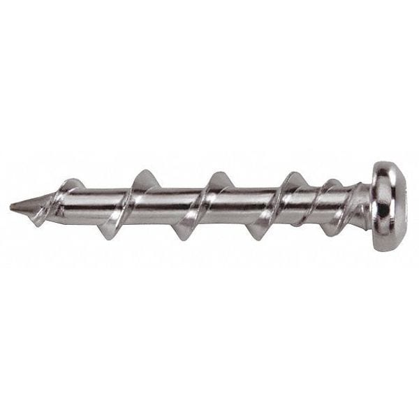 Wall Anchor Screw, Anchor Diameter 1/4 in, Screw Size 1 1/4 in, Overall Length 1 1/4 in, Thread Length 1 1/4 in, Head Type Round, Head Width Not Applicable, Drive Type Square, Material Steel, Material Grade/Class 1018, Removable Removable, Compatible Material Brick, Concrete, Drywall, Plaster, Drill Bit Size 3/16 in, Screw Anchor Type Self-Threading Anchor, System of Measurement Inch, Includes Not Applicable, Maximum Material Thickness Not Applicable, Minimum Installation Depth 3/4 in