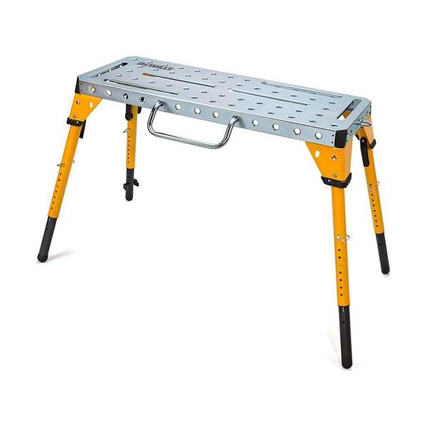 Welding Table and Work Bench, Frame Material Steel, Minimum Adjustable Height 8 in, Overall Fixed Height Not Applicable, Overall Load Capacity 1,000 lb, Overall Width 46 in, Work Surface Material Steel, Work Surface Width 46 in, Frame Material Finish Powder Coating, Height Adjustability Adjustable Height, Maximum Adjustable Height 36 in, Color Black, Silver, Yellow, Features Jobsite, Mobile, Oversized Eye Bolt Ideal for Holding Welding Guns, Table Legs have both Spring Pin/Snap Button Locks
