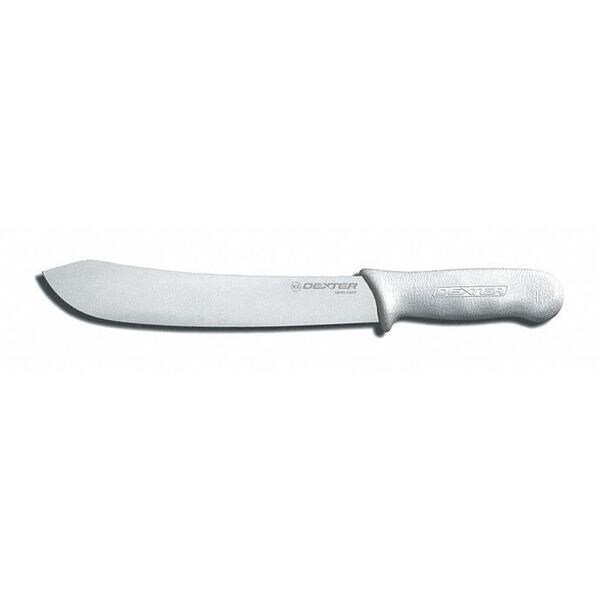 Butcher/Skinning Knife, Knife Type Butcher Knife, Blade Material Steel, Handle Color White, Blade Type Honed, Overall Length 17 in, NSF Certified Yes, Handle Material Sanitary Polypropylene, Blade Length 12 in, Handle Length 5 in, Number of Implements 1, Finger Guard Included Yes