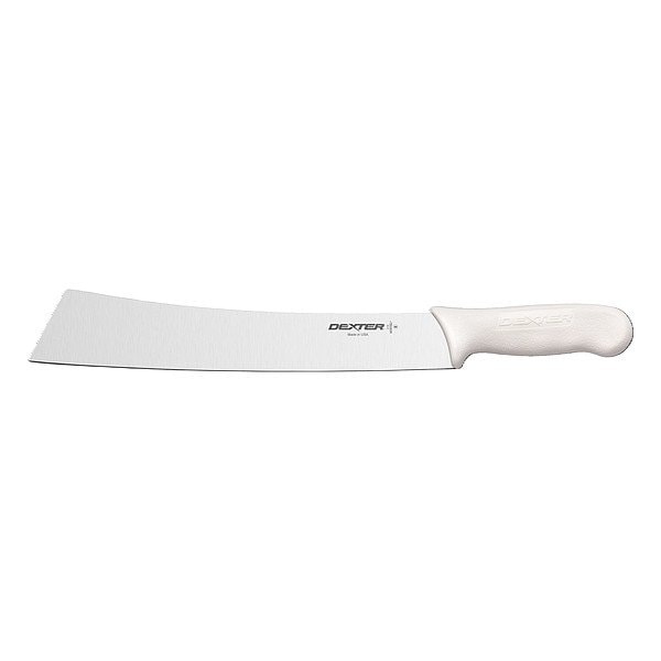 Cheese Knife, Edge Style Honed Edge, Knife Type Cheese Knife, Blade Material Steel, Handle Color White, Blade Type Wide, Overall Length 17 3/4 in, NSF Certified Yes, Handle Material Polypropylene, Blade Length 12 in, Handle Length 5 in, Number of Implements 1, Finger Guard Included Yes
