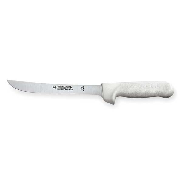 Butcher/Skinning Knife, Knife Type Butcher Knife, Blade Material Steel, Handle Color White, Blade Type Stiff, Overall Length 12 1/2 in, NSF Certified Yes, Handle Material Sanitary Polypropylene, Blade Length 7 1/2 in, Handle Length 5 in, Number of Implements 1, Finger Guard Included Yes
