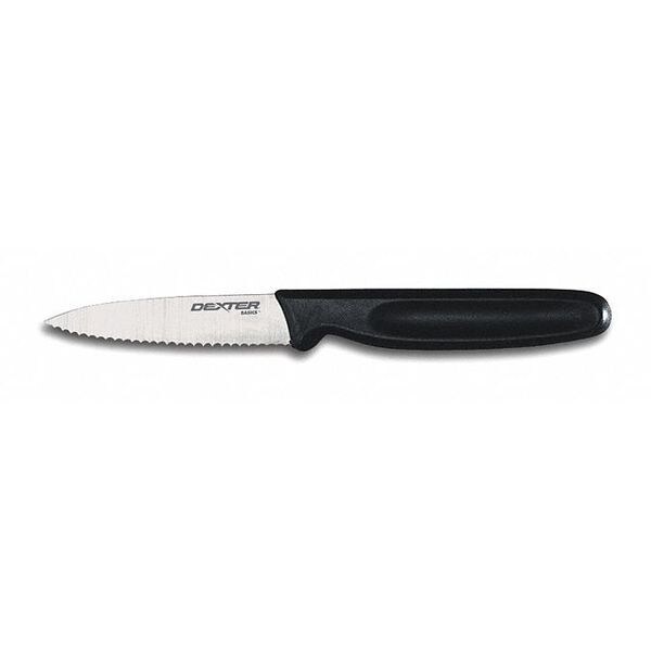 Paring Knife, FDA Compliant No, Knife Type Paring Knife, Blade Material Steel, Dishwasher Safe No, Handle Color Black/White, Blade Type Scalloped, Overall Length 7 in, NSF Certified Yes, Handle Material Sanitary Polypropylene, Blade Length 3 1/4 in, Handle Length 3 3/4 in, Metal Detectable No, Number of Implements 1, Finger Guard Included Yes