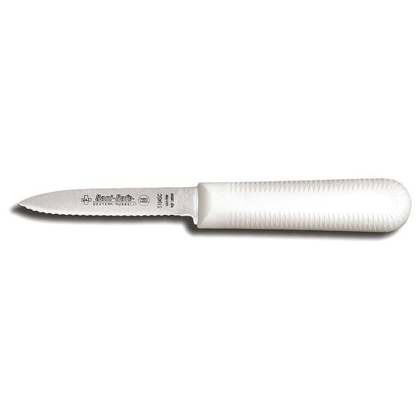 Paring Knife, Knife Type Paring Knife, Blade Material Steel, Handle Color White, Blade Type Scalloped, Overall Length 7 1/4 in, NSF Certified Yes, Handle Material Sanitary Polypropylene, Blade Length 3 1/4 in, Handle Length 4 in, Number of Implements 1, Finger Guard Included Yes