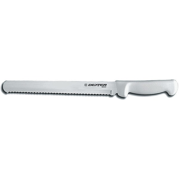 Scalloped Slicer, FDA Compliant No, Knife Type Slicer, Blade Material Steel, Dishwasher Safe No, Handle Color White, Blade Type Scalloped, Overall Length 15 in, NSF Certified Yes, Handle Material Polypropylene, Blade Length 10 in, Handle Length 5 in, Metal Detectable No, Number of Implements 1, Finger Guard Included Yes