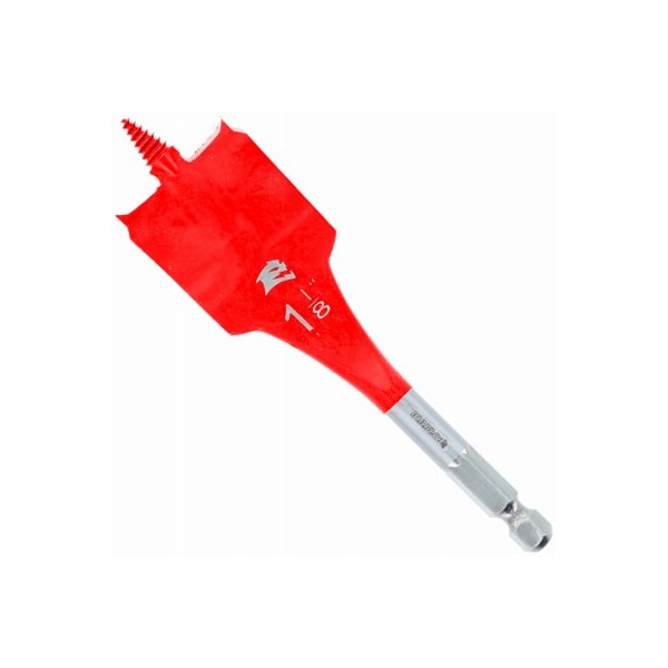 Diablo, 118 x 4 Speed Demon spade bit Diablo's Speed Demon spade bit range provides one of the fastest, most effortless hole drilling solutions on the market for fast, clean wood The highperformance speedtip design selffeeds for faster hole making when compared to traditional spade bits An optimized curved paddle design enhances the chip evacuation process for more holes per charge This range is impact strong for increased shank stability and durability in cordless and corded impact and drill drivers