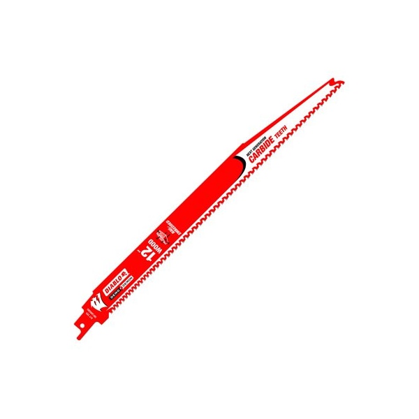 Diablo Demo Demon, 12, 6 Tooth, Carbide, Reciprocating Blade, Specifically Designed For Maximum Performance In Nail Embedded Wood Applications, Unique High Performance Tooth Design, For Cutting Wood, Wood Composites Nail Embedded Wood