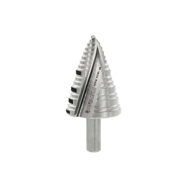 Diablo, 138'', Step Drill Bit, 15 Steps, 78 To 138, Impact, Fast, Accurate Cuts Increased Stability In Thin Metals, PVC, Other Plastic Materials, Innovative Split Point Tip Design Enables Fast, On Point Start Resulting In Increased Durability Up To 4X Longer Life, Precision Grinding Process On Each Step Reduces Wear Delivers 2X Faster Cut, Designed With 14 Hex Shank, Can Be Used With Drills Impact Drivers, Split Point Tip 132 Degree, Corded Cordless Tool Efficiency In High Speed Mode For Up To 75 Percent More Holes Per Battery Charge