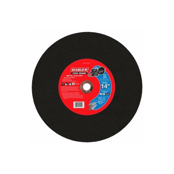 Diablo Steel Demon 14 In Metal High Speed Cut Off Disc 1 In Arbor Diablo's Steel Demon Metal Cut Off Discs Deliver Industrial Performance, Increased Productivity And Longer Cutting Life Featuring A Premium Ceramic Blend That Produces Quick Cuts That Deliver Up To 6X Longer Life Fully Reinforced For HandHeld Work, These Discs Are Ideal For Cuts And Working In HardToReach Areas