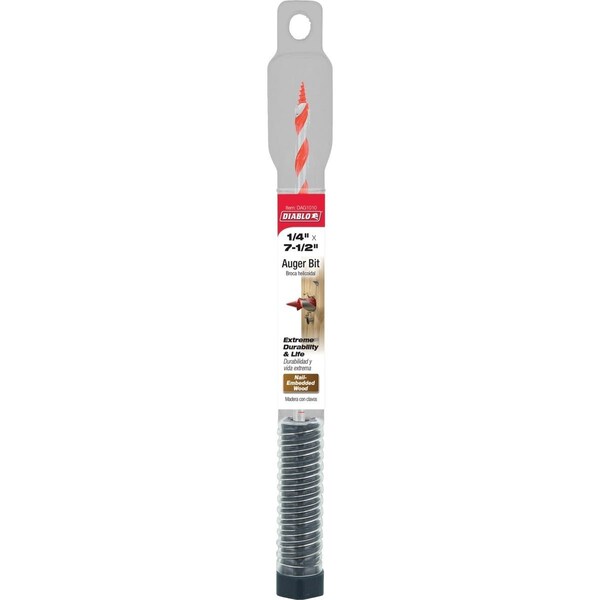 Diablos Auger Bit range provides maximum performance extreme durability and superior life in nail-embedded wood applications. A two-step cutting action creates holes that are precise and clean. The self-feeding Dura-Tip pulls the bit while the dual cutting edge delivers an effortless smooth drilling experience in wood with nails. Deep flutes enhance the chip evacuation process for more holes per charge. Quick change shank increases stability and durability in cordless and corded impact wrenches and drill drivers.