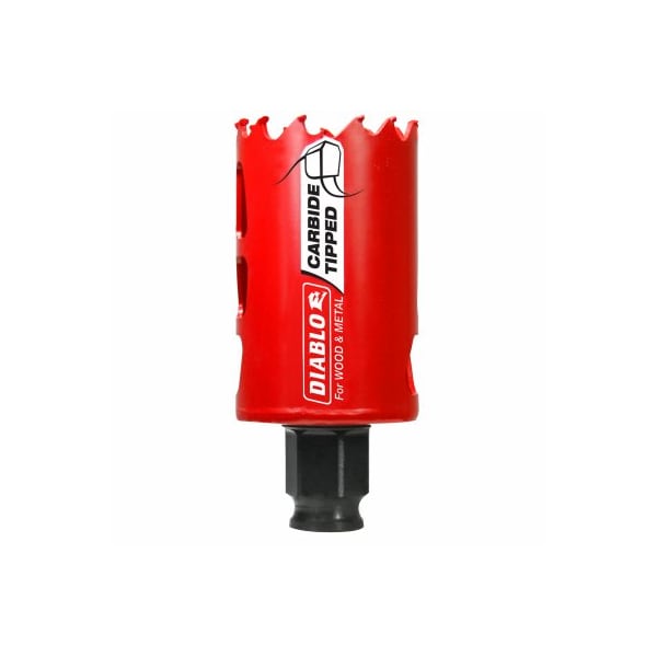 Diablo, 158, Carbide Tipped Hole Saw, Cuts Both Wood Metal, Use On Wood, Nail Embedded Wood, Plastic, Aluminum, Metal, Cast Iron, Metal Stainless Steel, Delivers Longer Cutting Life Than BiMetal For Faster Cutting Performance Increased Productivity, 238 Cutting Depth For 40 Percent Deeper Holes In Single Pass Increased Productivity, Variable Tooth Design For Faster Cuts, Snap Lock Plus Mandrel System For Quick Easy Changes With No Down Time, Includes Mandrel, Pilot Bit, 58 Threaded Adapter Fits Diameters 114 To 6 12 Threaded Adapter Fits Diameters 916 To 3116, 1 Size Fits All Mandrel Fits All Diablo Holes Saws In The Carbide BiMetal Range, From 58 To 6 Diameter, Tool Free Plug Ejection For Fast Material Removal