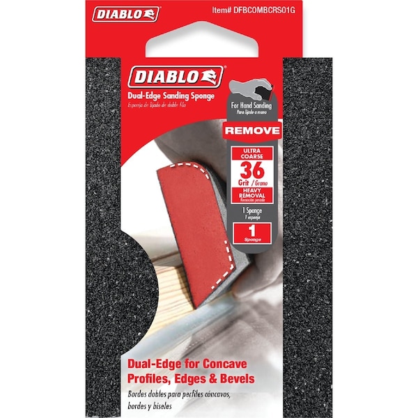 Diablos premium dual-edge sanding sponges include break-through innovations for superior sanding performance extended sanding life and increased hand-sanding productivity. Featuring a premium aluminum oxide blend these dual-edge sanding sponges remove material faster and offer up to 3X longer sanding life versus standard hand sanding sheets. The sanding sponges dual-edge creates concave edge and bevel profiles with the use of one sponge. The full contact design provides maximum sanding potential by delivering consistent scratch patterns and ultra-smooth finishes. The superior grain bonding system ENDURA-BOND provides Diablos sanding blocks with longer life and extreme durability.