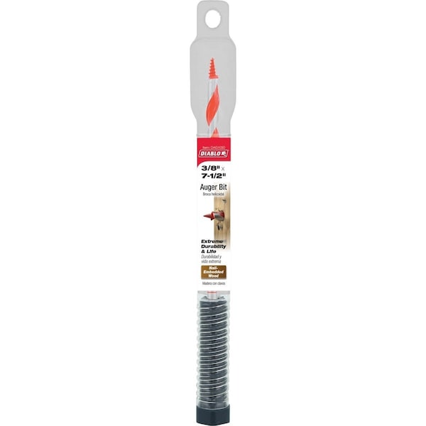 Diablos Auger Bit range provides maximum performance extreme durability and superior life in nail-embedded wood applications. A two-step cutting action creates holes that are precise and clean. The self-feeding Dura-Tip pulls the bit while the dual cutting edge delivers an effortless smooth drilling experience in wood with nails. Deep flutes enhance the chip evacuation process for more holes per charge. Quick change shank increases stability and durability in cordless and corded impact wrenches and drill drivers.