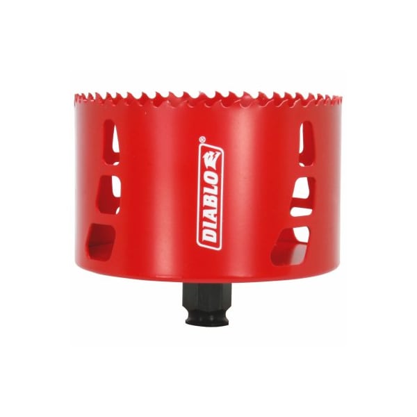 Diablo, 418'', High Performance Hole Saw, Delivers Faster Cutting Performance Increased Productivity, Hole Saw Design Provides Ultimate Cutting Depth To Bore Deeper Holes In 1 Pass, Variable Tooth Design For Faster Cuts With Less Vibration ToolFree Plug Ejection For Fast Material Removal, Snap Lock Offers Quick Easy Change System With No Down Time, 1 Snap Lock Mandrel Fits All Diablo Hole Saws, From 58 To 6 Diameter, For Use With Wood Metal, Mandrel Pilot Bit Sold Separately