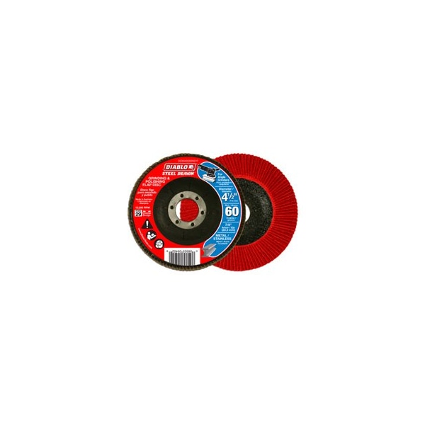 Diablo, 45'', 60 Grit, Steel Demon, Speed, Flap Discs, Premium Zirconium Grain Blend For Up To 10x Faster Material Removal When Compared To Standard Grinding Wheels, Special Flap Design Offers Flexibility Provides For Cushioned Grinding Effect, High Performance Flap Discs Combine 2 Steps In1 By Simultaneously Grinding Polishing