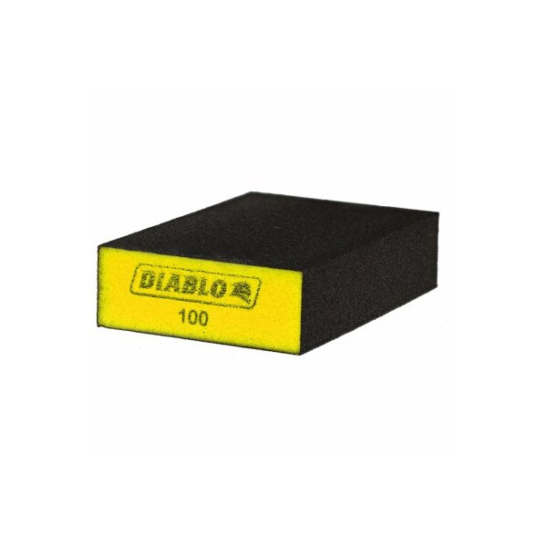 Diablo, 4 Pack, Large Flat 100Grit Fine Sanding Sponge Diablo's Premium Flat Edge Sanding Sponges Include BreakThrough Innovations For Superior Sanding Performance, Extended Sanding Life And Increased HandSanding Productivity Featuring A Premium Aluminum Oxide Blend, These Flat Sanding Sponges Remove Material Faster And Offer Up To 3X Longer Sanding Life Versus Standard Hand Sanding Sheets The Flat Edges Make It Easy To Access Inside Corners And Hard To Reach Surfaces And The Longer Length Allow For Sanding Medium Surface Areas The Full Contact Design Provides Maximum Sanding Potential By Delivering Consistent Scratch Patterns And UltraSmooth Finishes The Superior Grain Bonding System, ENDURABOND, Provides Diablo's Sanding Blocks With Longer Life And Extreme Durability