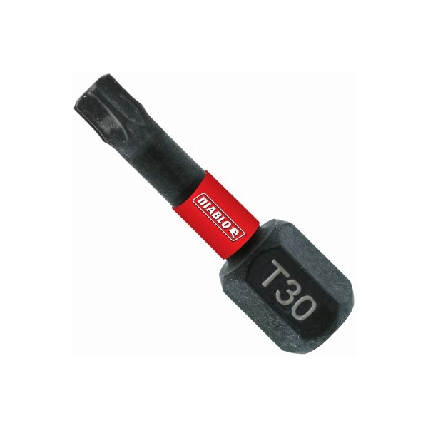 Diablo, 5 pack 1 30 torx drive bits Diablo's driver bit range of torx bits delivers maximum performance, extreme durability and up to 50 times longer life when installing and removing fasteners An optimized tip design provides a strong, precise grip that reduces wear, stripping and slippage Torque resistant design absorbs torque for less stress at the tip when tightening and removing nuts and screws This range is impact strong, delivering increased shank stability and durability in cordless and corded impact and drill drivers