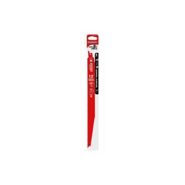 Diablo, Demo Demon, 5 Pack, 12'', BiMetal General Purpose Reciprocating Saw Blade, Specifically Designed For Maximum Performance, Use On Nail Embedded Wood Metal Applications, High Performance Blades Feature BiMetal Technology That Delivers Up To 5X Longer Life Of Standard Blades, Patented Variable Tooth Technology Provides Faster Cuts With Less Vibration