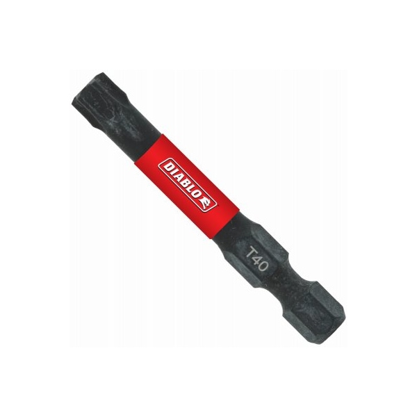 Diablo, 5 pack 2 40 torx drive bits Diablo's driver bit range of torx bits delivers maximum performance, extreme durability and up to 50 times longer life when installing and removing fasteners An optimized tip design provides a strong, precise grip that reduces wear, stripping and slippage Torque resistant design absorbs torque for less stress at the tip when tightening and removing nuts and screws This range is impact strong, delivering increased shank stability and durability in cordless and corded impact and drill drivers