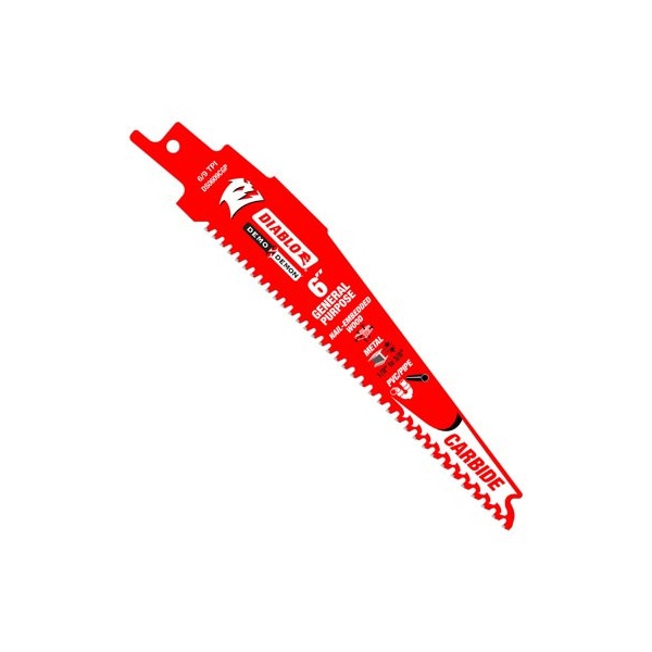 Diablo, 6'' x 69TPI, General Purpose, Demo Demon Reciprocating Saw Blades, Specifically Designed For Both Wood Metal, Exclusive Features That Deliver Unmatched 50X Longer, Both Wood Metal Cutting Applications, Oversized Blade Body, Variable Tooth Design PermaShield NonStick Coating, Ideal For Cutting NailEmbedded Wood Ferrous Metal Applications