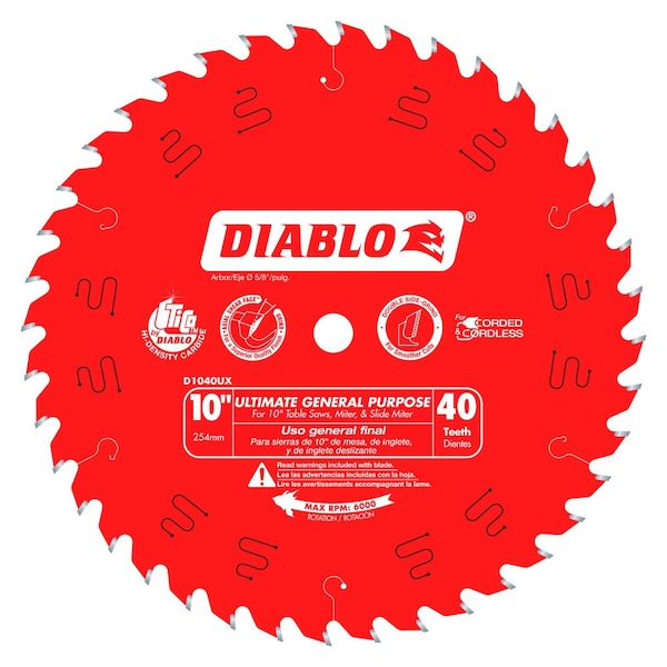 Circular Saw Blade, Arbor Size 5/8 in, Diamond Knockout Diamond Knockout Not Included, Number of Teeth 40, Metal Cutting Type Not Applicable, Cut Width 0.1 in, Tip Material Carbide