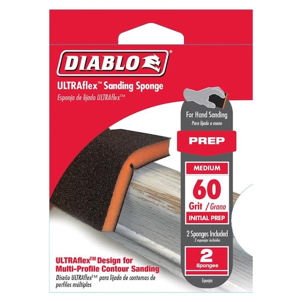 Diablo's premium Ultraflex sanding sponges include break-through innovations that improve performance, extend sanding life and increase hand-sanding productivity. Featuring a premium aluminum oxide blend, these foam sponges remove material faster and offer up to 3X longer sanding life versus standard hand sanding sheets. Ultraflex foam technology allows flexible, multi-profile contour sanding in hard to reach areas. The full contact design provides maximum sanding potential by delivering consistent scratch patterns and ultra-smooth finishes. The superior grain bonding system, Endura-Bond, provides Diablo's sanding sponges with longer life and extreme durability.