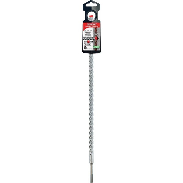 Diablos revolutionary most complete range of SDS-Plus and SDS-Max Rebar Demon 4-cutter full-carbide head hammer drill bits are the only bits designed to be the most durable fastest and coolest solutions on the market. The Rebar Demon bits feature up to 2X more Dura-Carbide to withstand up to 1800F of intense heat whereas standard bits fail at 800F. Diablos impact resistant 4-cutter full-carbide head withstands the stress of high-powered hammer drills and the impact of rebar by taking small bites of rebar to deliver controlled carbide wear reduced vibration and up to 7X longer life. Produced with Tri-Metal Fusion Welding the full-carbide head resists heat and prevents breakage in extreme impact situations. Precision Tip delivers the stability and accuracy required to produce fast precise holes in reinforced concrete for anchor setting.