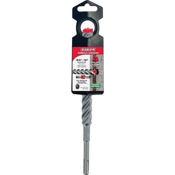 Rebar Demon 3/4'' x 10'' SDS-Plus Full Carbide Rotary Hammer Drill Bit