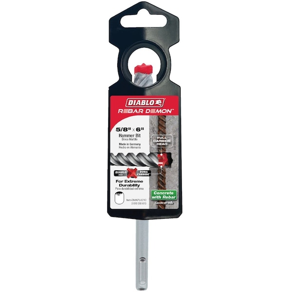 Rebar Demon 5/8'' x 6'' SDS-Plus Full Carbide Rotary Hammer Drill Bit