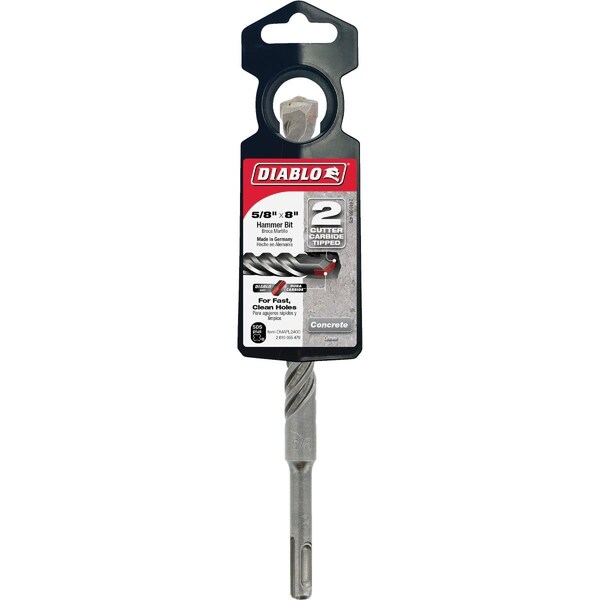 Diablos SDS-Plus two-cutter carbide-tipped hammer bits provide one of the fastest and longest lasting drilling solutions on the market for concrete. Optimized with a unique brazing and hardening process the carbide tips extend life and productivity allowing users to drill fast accurate holes. The Peak Point tip design allows for aggressive starts that produce clean fast holes for common sized anchors. Optimized for maximum performance in corded and cordless SDS-Plus rotary hammers.