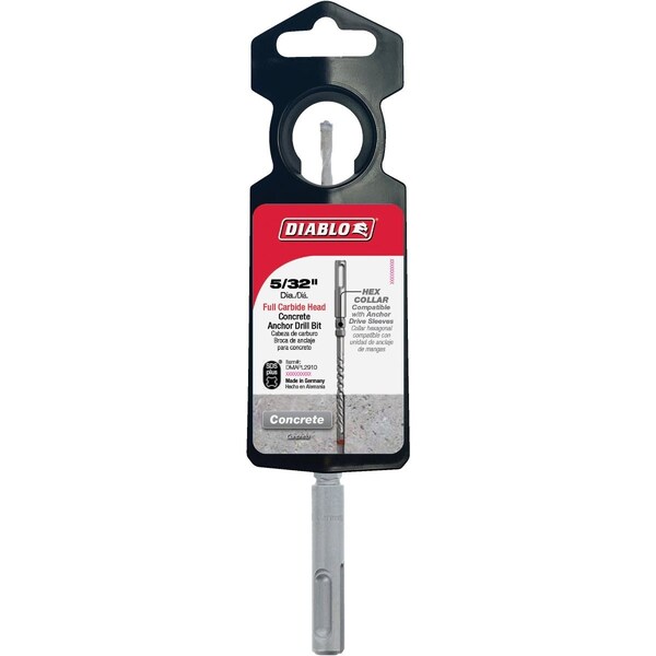 Diablos SDS-Plus four-cutter full-carbide head concrete anchor hammer drill bits are one of the strongest most durable and fastest tapcon installation bits. Diablos full-carbide head bits withstand the stress of high-powered hammer drills and the impact of rebar cutting delivering extreme durability and strength. Produced with Tri-Metal Diffusion Bonding technology the full-carbide head resists heat and prevents breakage for maximum life and productivity. Precision Tip delivers the stability and accuracy required to produce fast precise holes in concrete with rebar for anchor setting. Optimized for maximum performance in corded and cordless SDS-Plus rotary hammers.