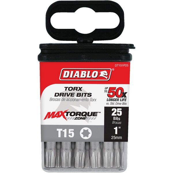 T15 TORX 1'' Insert Impact Screwdriver Bit, 25PK