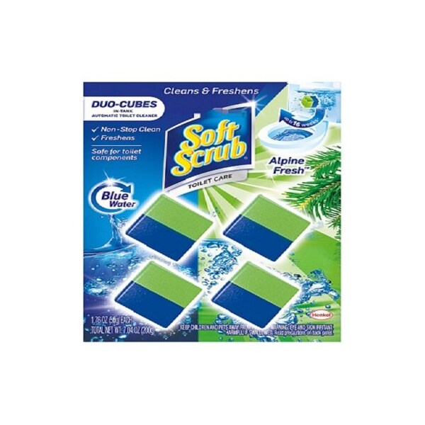 4 Count, Alpine Fresh Scent, Soft Scrub Duo Cubes Toilet Bowl Cubes, Helps Fight Toilet Ring, Hard Water Limescale, Safe For Toilet Components, Easy To Use, Cleans Up To 4 Weeks