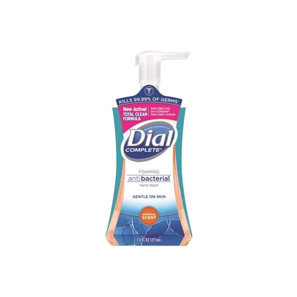Dial Complete Antimicrobial Foaming Hand Wash is a 7.5 oz product designed for frequent hand washing in away-from-home settings. It kills 99.99 percent of bacteria and features a hypoallergenic foam that is as mild as water and gentle on skin. The formula includes a triple moisturizing system to help condition hands without drying. This non-drying antimicrobial hand wash supports skin health while providing effective cleansing, available in a pack of 8.