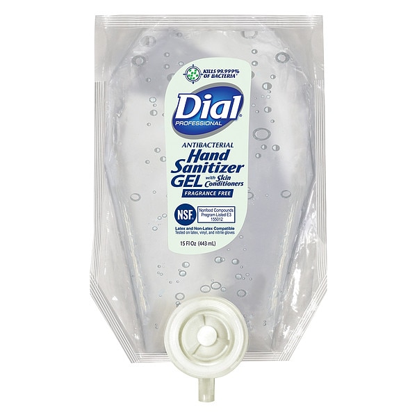 Hand Sanitizer, Form Gel, Formula Ethyl Alcohol, Container Type Cartridge, Container Size 15 fl oz, Fragrance Fragrance Free, Hygiene Properties Antibacterial, Requires Dispenser Yes, Series Dial Professional, Number of Pumps Included Not Applicable, NSF Rating E3, Manufacturer Dispenser Part Number 00017000340555, Color Clear, Product Type Hand Sanitizer, Standards NSF Registration No.155012, Ligature Resistant Not Applicable, Application Healthcare, Alcohol Content 62 Percent