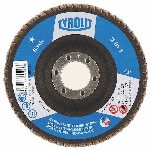 BASIC 2 in 1 Zirconia Flap Discs 4.5" X 7/8" ZA60-B Tyrolit