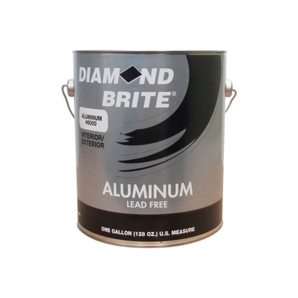 Diamond brite paint oil aluminum paint, gallon pail 1/case - 46000-1 dimond-brite aluminum paint is an excellent product to cover almost any surface seeking a brite aluminum finish. This is a great product to recoat chainlink fencing, radiator heaters, machinery, etc. This paint can be used indoors or outdoors. Durable, long lasting enamel is corrosion resistant. Excellent gloss and color retention with superior coverage and hiding. Protects against the elements and is ideal for heavy-duty and commercial environments. 6-8 hr dry time with a 24 hr recoat time. 300 sq. Ft coverage per gallon. Mineral spirits clean-up. Protect from freezing.