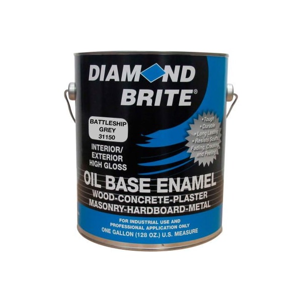 Diamond brite paint oil enamel, battleship gray gallon pail 1/case - 31150-1 provides a professional quality, high hide, mildew resistant alkyd finish with excellent stain removal. It is a durable gloss enamel that helps protect interior and exterior surfaces against repeated abrasion, rust and a variety of household chemicals. This product is an excellent product to also use in industrial applications, machinery, or commercial uses. It dries extremely hard, and will stand up against surfaces that receive high traffic and use. Properly prepare interior or exterior surfaces such as: wood, drywall, plaster, masonry, metal, well-bonded wallpaper, brick, stucco, aluminum and cinder block. 6-8 hr dry time; 24 hr. Recoat time. 300 sq. Ft coverage per gallon. Mineral spirits clean-up. Protect from freezing.