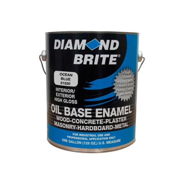 Diamond brite paint oil enamel, ocean blue gallon pail 1/case - 31550-1 provides a professional quality, high hide, mildew resistant alkyd finish with excellent stain removal. It is a durable gloss enamel that helps protect interior and exterior surfaces against repeated abrasion, rust and a variety of household chemicals. This product is an excellent product to also use in industrial applications, machinery, or commercial uses. It dries extremely hard, and will stand up against surfaces that receive high traffic and use. Properly prepare interior or exterior surfaces such as: wood, drywall, plaster, masonry, metal, well-bonded wallpaper, brick, stucco, aluminum and cinder block. 6-8 hr dry time; 24 hr. Recoat time. 300 sq. Ft coverage per gallon. Mineral spirits clean-up. Protect from freezing.