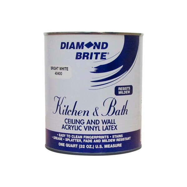 Diamond brite paint latex kitchen & bath, 32 oz. Pail - 40400-4 any room, such as a kitchen or bathroom, that will be exposed to water, splashing, or steam, is best painted with a semi-gloss paint. Diamond-brite kitchen & bath paint is formulated with a mildew protectant to reduce brown spotting caused by a buildup of mildew. For best results, priming the surface first can reduce the need for a second coat. Recommended primer is diamond brite 40100 interior/exterior latex pva primer sealer (sold separately). For clean up & disposal, use soap and water. Do not dispose of this product down a drain. Protect from freezing.