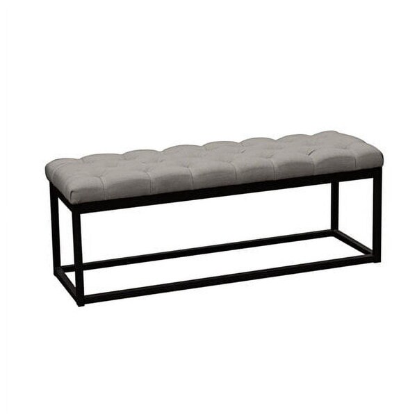 Mateo Black Powder Coat Metal Linen Tufted Bench, Grey - Small