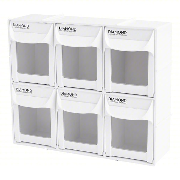 Tip-Out Bin, Mounting Location Wall, Overall Height 10 in, Overall Length 4 1/4 in, Overall Width 11 7/8 in, Stackable Stacking Capable, Volume Capacity 0.2 cu ft, Weight Capacity 25 lb, Number of Tiers 2, Bin Inside Depth 2 3/4 in, Bin Inside Height 4 7/8 in, Bin Inside Width 3 1/4 in, Number of Bins 6, Product Type Tip-Out Bin