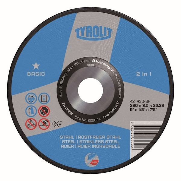 Tyrolit BASIC 2 in 1 Wheel Type 27 7" X 1/4" X 5/8"-11