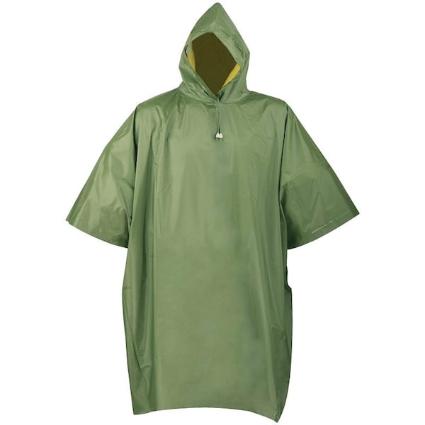 Poncho, One-Size, PVC, Olive/Yellow, Drawstring Collar, Side Snap Closure