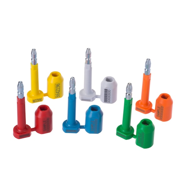 Bolt seals are high-strength security seals used on shipping containers, railroad and air freight containers. TheSnapLockbolt seal features a metal pin and cylinder coated with high impact plastic. The SnapLock is laser engraved with matching serial numbers on the pin and cap. An updatedprinting location allows visibilty of both numbersafterinstallation.Having each component marked with matching serial numbers eliminates the possibility of component replacement and increased tamper resistance. C-TPAT compliant for international shipments. Marking Parameters: Consecutive Numbering and matching. Pull Strength 3,000+ lbs, Package Quantity 200