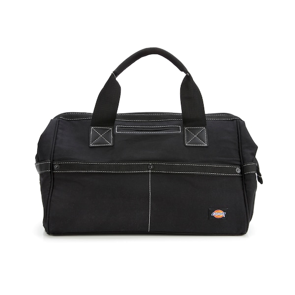 When you put the Dickies 57085 to the test, you’ll never be disappointed with the results! Constructed of durable black canvas, this tool/work bag features a large main compartment for easy access to your tools, accessories and can hold a variety of supplies. On the exterior, there are 6 webbing and rivet reinforced pouch pockets and a smaller accessory slip pocket. Durable piping along the seams allows the bag to handle more wear and tear from normal use. The heavy-duty zipper closure secures your tools in place when you’re ready to pack up, and padding lined stitched handles provides for comfort when transporting.