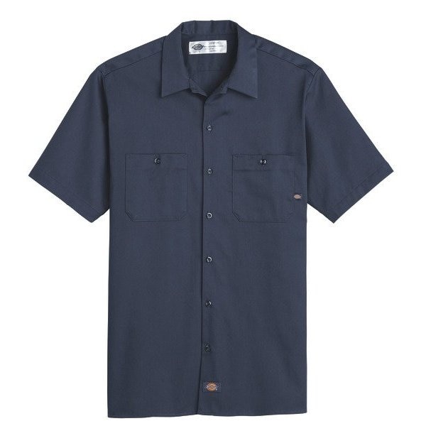 Shirt, Gender Men's, Style Work Shirt, Material Cotton, Fabric Weight 6 oz/sq yd, Front Closure Type Buttons, Number of Outside Pockets 2, Fit Regular Fit, Color Dark Navy, Sleeve Type Short, Sleeve Length 10 in, Size M, Minimum Neck Size 15 in, Maximum Neck Size 15 1/2 in, Maximum Chest Size 40 in, Minimum Chest Size 38 in, Length Regular, Size-Body Type Regular, Application Industrial, Cleaning and Care Instructions Industrial Laundry: Heavy Soil, Collar Style Two Piece