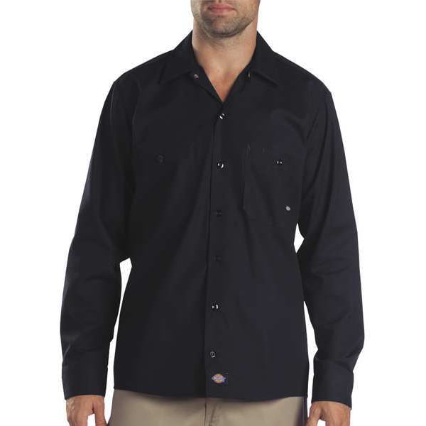 Long Sleeve Industrial Work Shirt, Gender Men's, Style Work Shirt, Material Cotton/Polyester, Fabric Weight 4.25 oz/sq yd, Front Closure Type Buttons, Number of Outside Pockets 2, Fit Regular Fit, Color Black, Sleeve Type Long, Sleeve Length 35 1/2 in, Size M, Minimum Neck Size 15 in, Maximum Neck Size 15 1/2 in, Maximum Chest Size 46 1/2 in, Minimum Chest Size 44 1/2 in, Length 33 in, Size-Body Type Tall, Application Industrial, Cleaning and Care Instructions Home Wash, Industrial Laundry